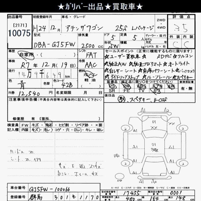 MAZDA ATENZA WAGON 25S L PACKAGE - лот 10075