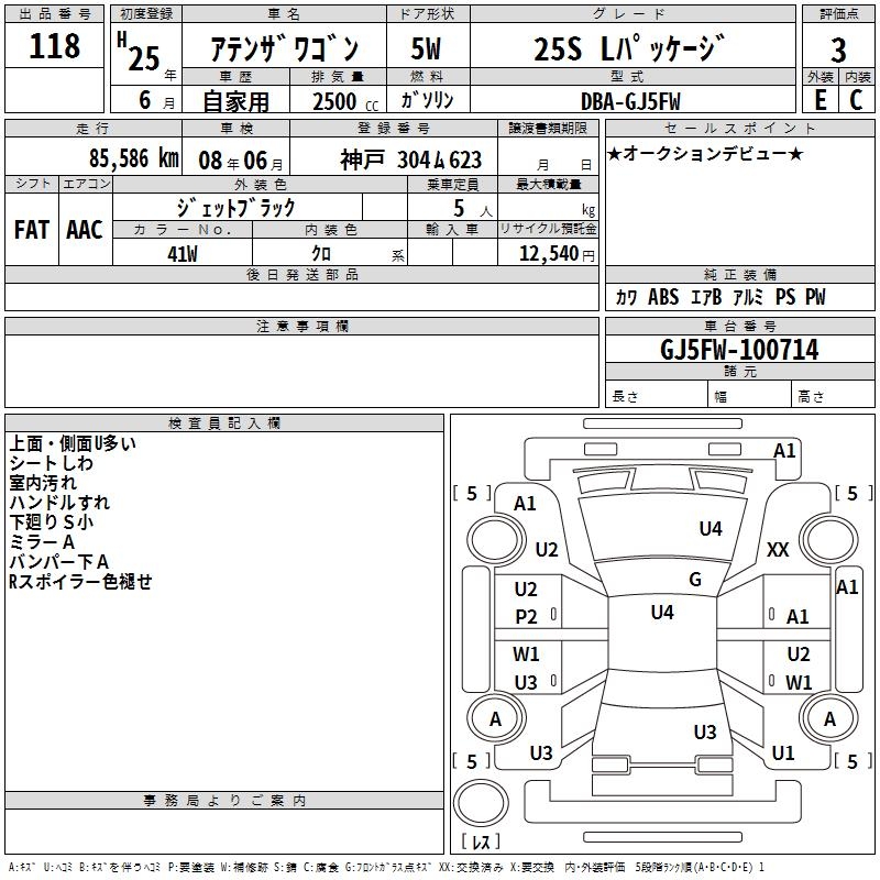 MAZDA ATENZA WAGON 25S L PACKAGE - лот 118