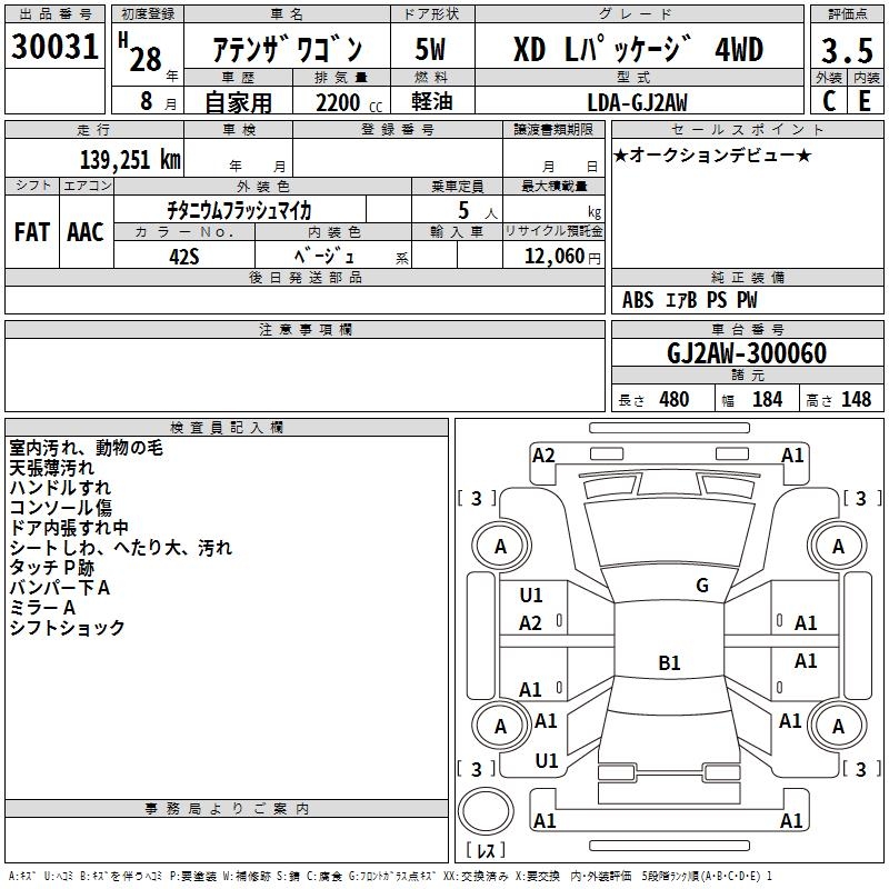 MAZDA ATENZA WAGON XD L PACKAGE 4WD - лот 30031