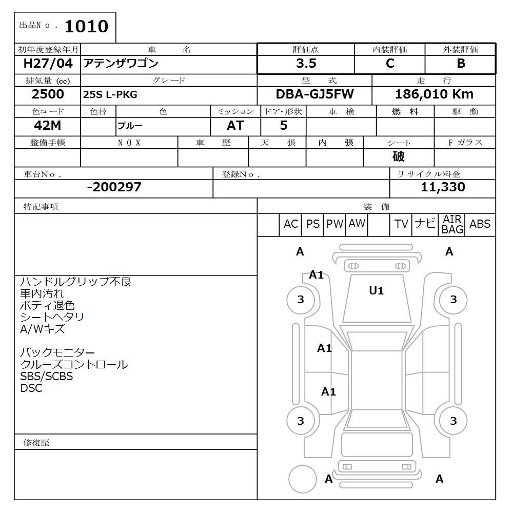 MAZDA ATENZA WAGON 25S L-PKG - лот 1010