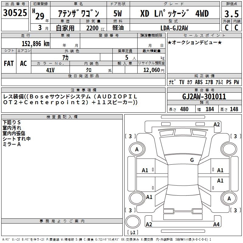 MAZDA ATENZA WAGON XD L PACKAGE 4WD - лот 30525