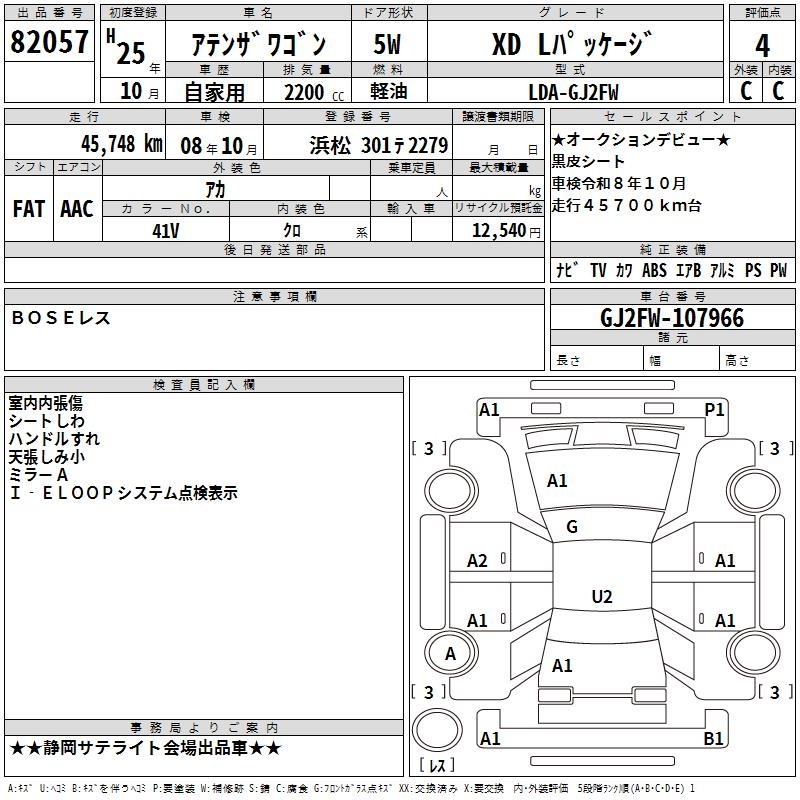 MAZDA ATENZA WAGON XD L PACKAGE - лот 82057