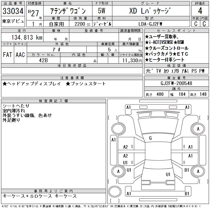 MAZDA ATENZA WAGON XD L PACKAGE - лот 33034
