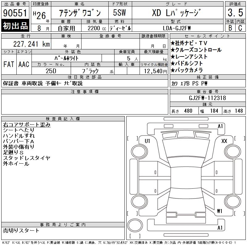 MAZDA ATENZA WAGON XD L PACKAGE - лот 90551