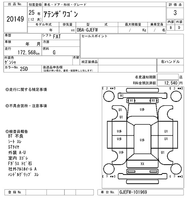 MAZDA ATENZA WAGON - лот 20149