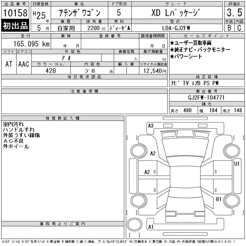MAZDA ATENZA WAGON XD L PACKAGE - лот 10158