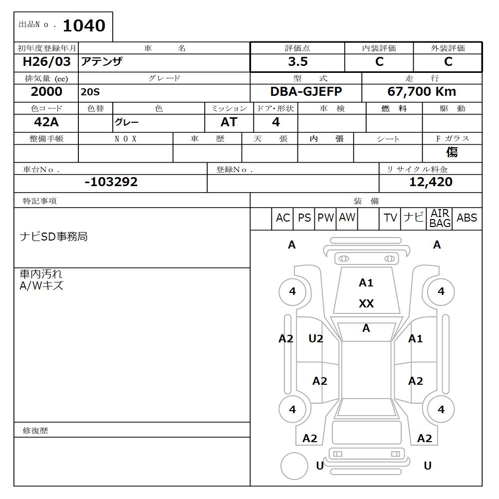 MAZDA ATENZA 20S - лот 1040