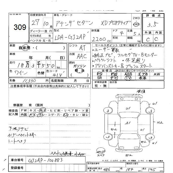 MAZDA ATENZA 4WD XD PRO ACTIVE - лот 309