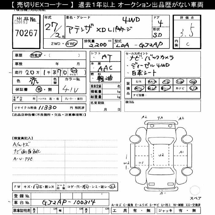 MAZDA ATENZA 4WD XD L-PKG - лот 70267