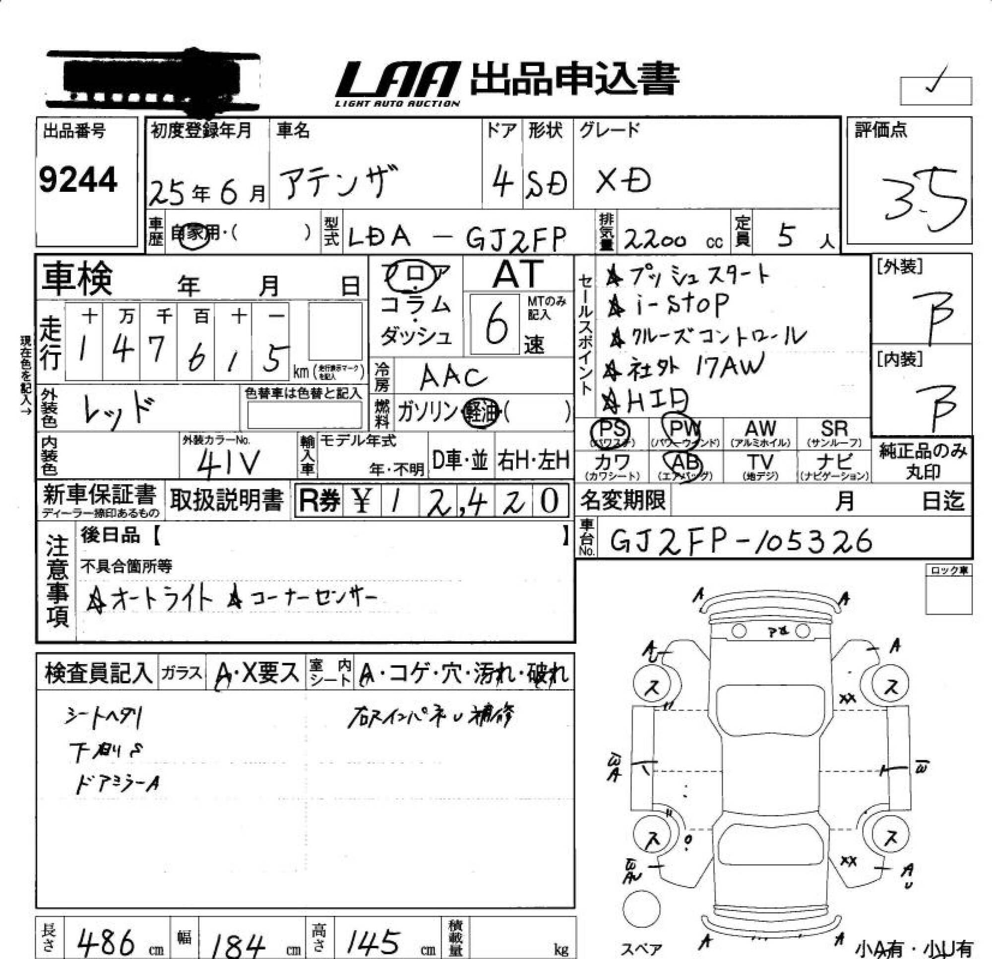 MAZDA ATENZA SEDAN - лот 9244