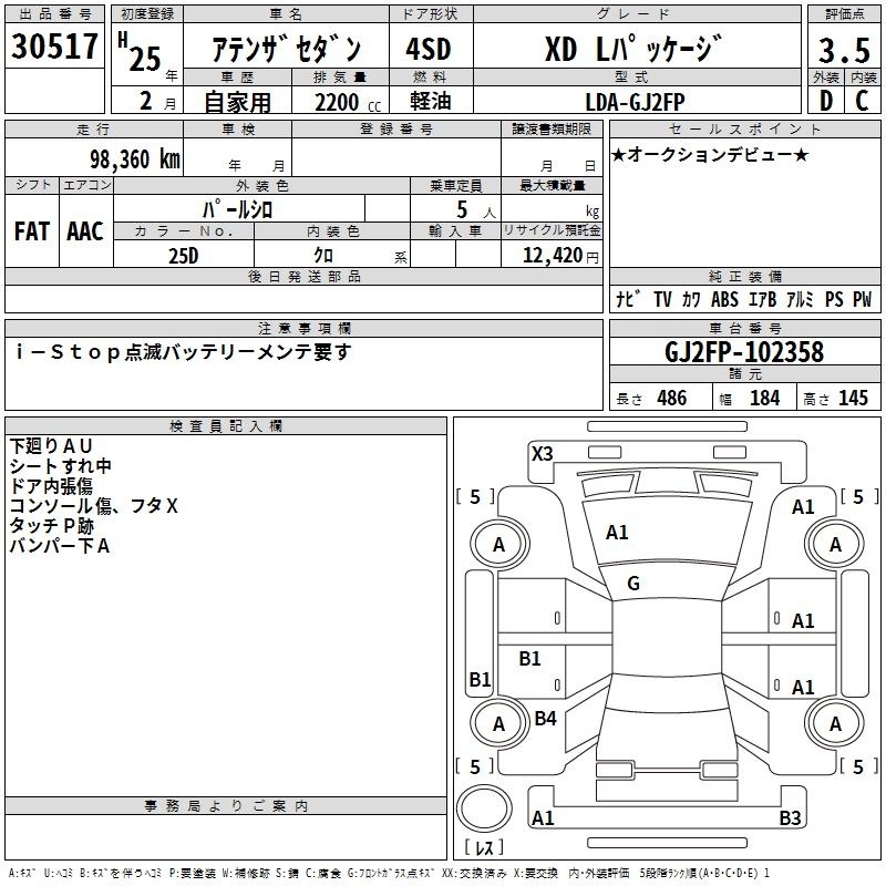 MAZDA ATENZA SEDAN - лот 30517