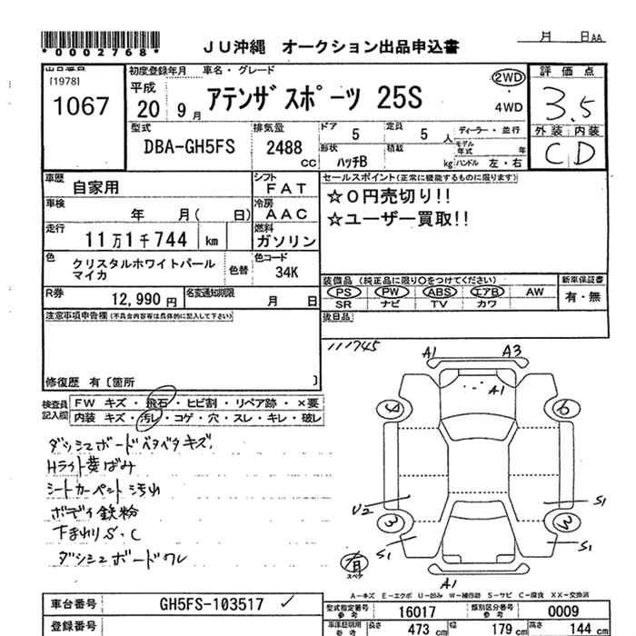 MAZDA ATENZA SPORT - лот 1067