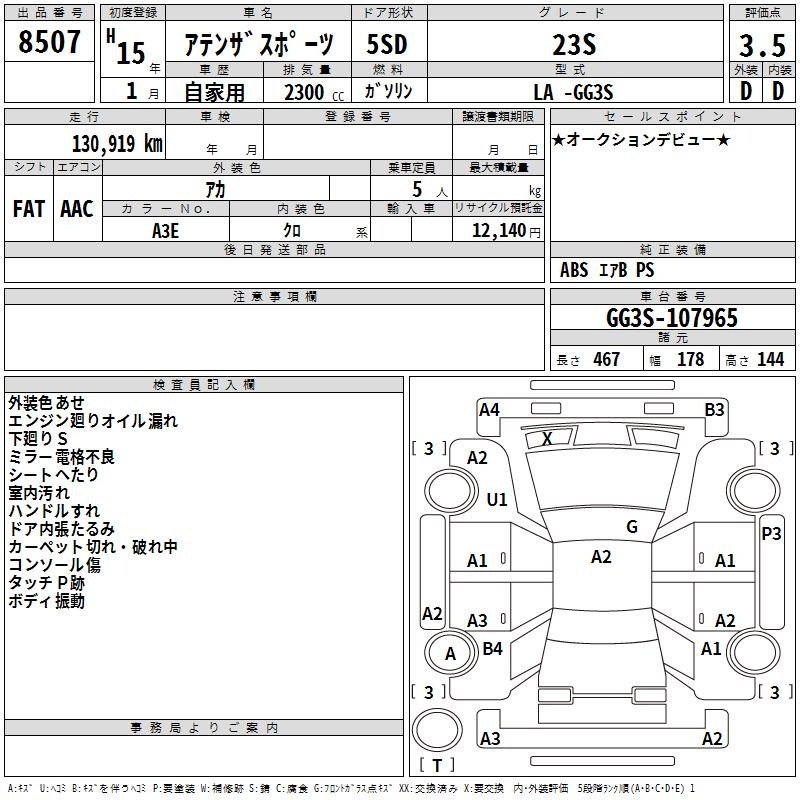 MAZDA ATENZA SPORT - лот 8507