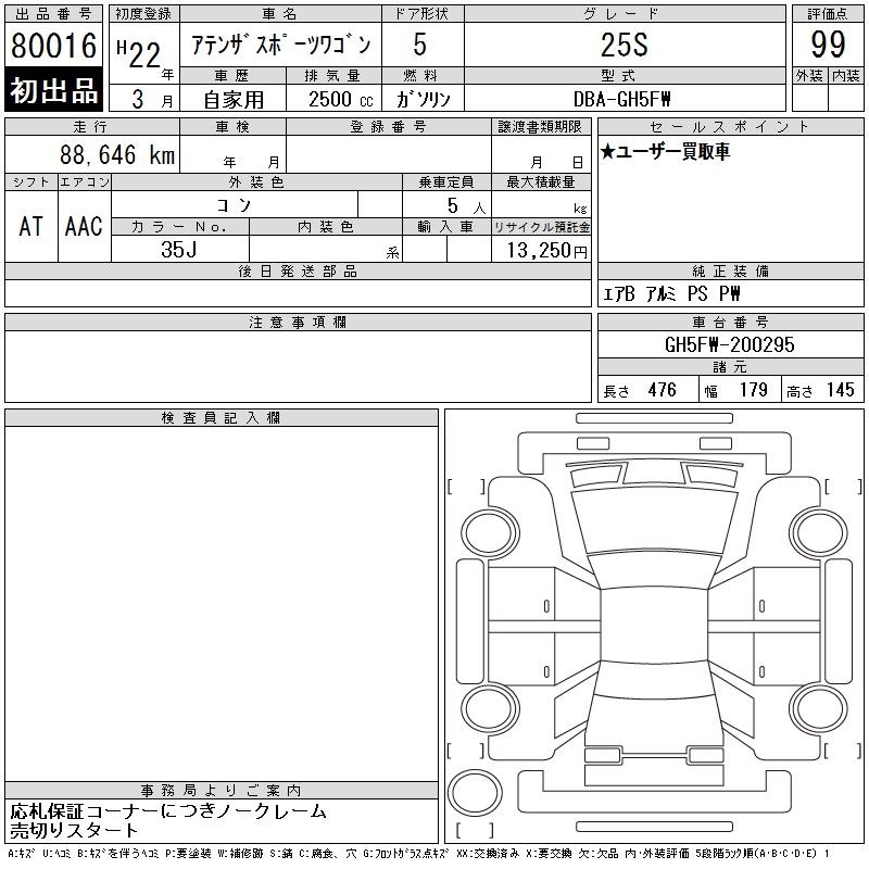 MAZDA ATENZA SPORT WAGON - лот 80016
