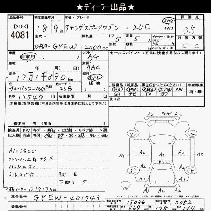 MAZDA ATENZA SPORT WAGON - лот 4081