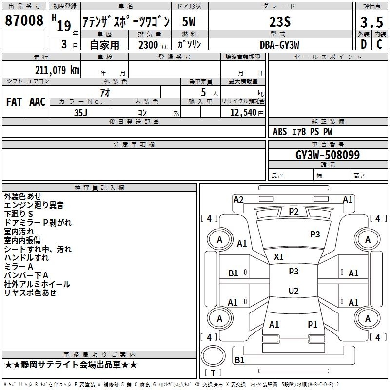 MAZDA ATENZA SPORT WAGON - лот 87008