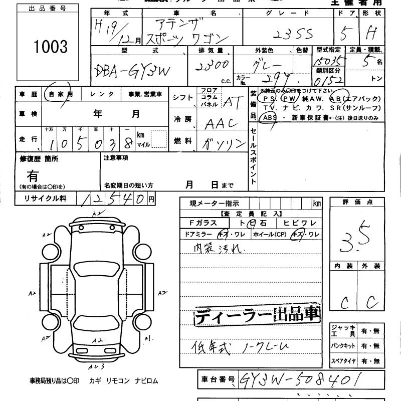 MAZDA ATENZA SPORT WAGON - лот 1003