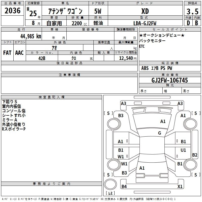 MAZDA ATENZA WAGON - лот 2036