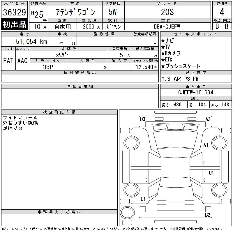 MAZDA ATENZA WAGON - лот 36329
