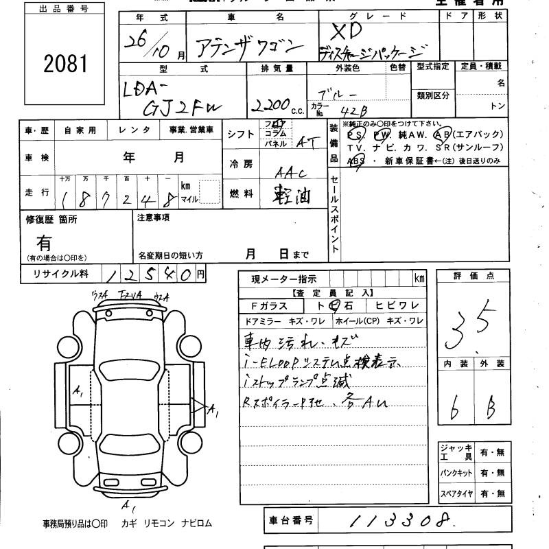 MAZDA ATENZA WAGON - лот 2081