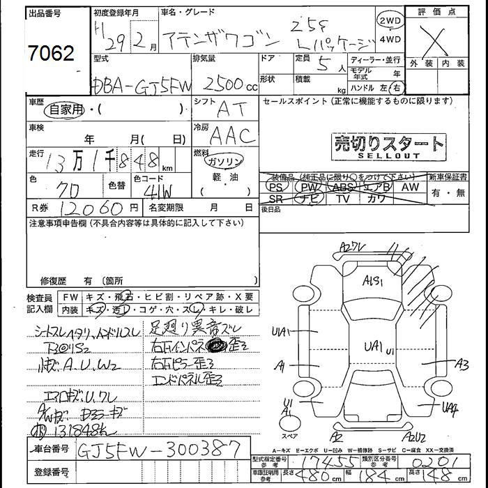 MAZDA ATENZA WAGON - лот 7062