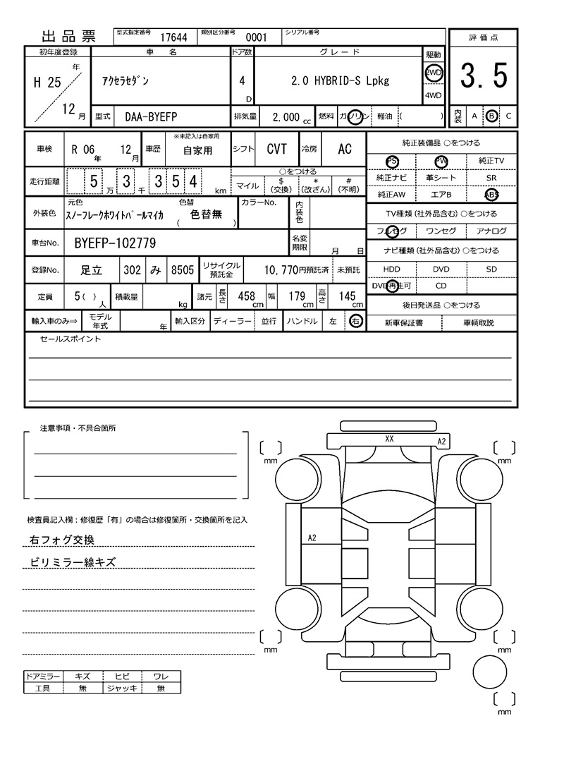MAZDA AXELA HYBRID - лот 54287