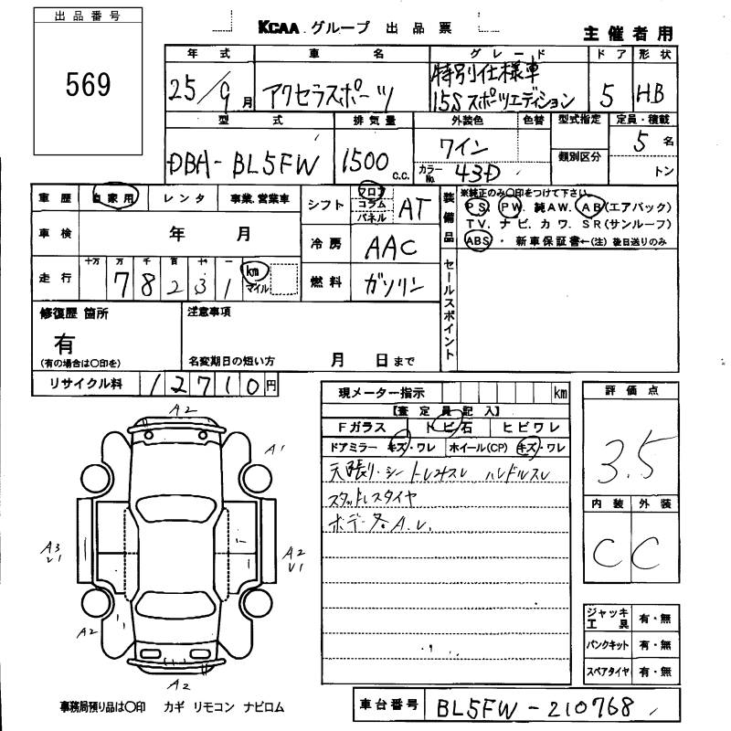 MAZDA AXELA SPORT 15S SPORT EDITION SPECIAL - лот 569