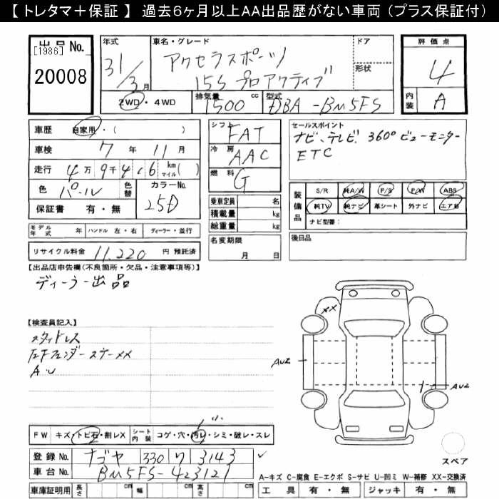 MAZDA AXELA SPORT 15S PRO ACTIVE - лот 20008