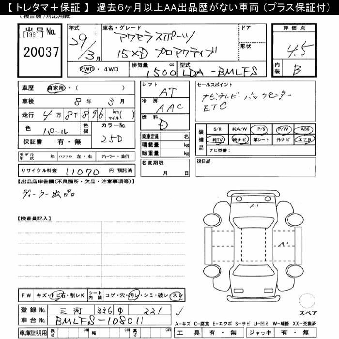 MAZDA AXELA SPORT 15XD PRO ACTIVE - лот 20037