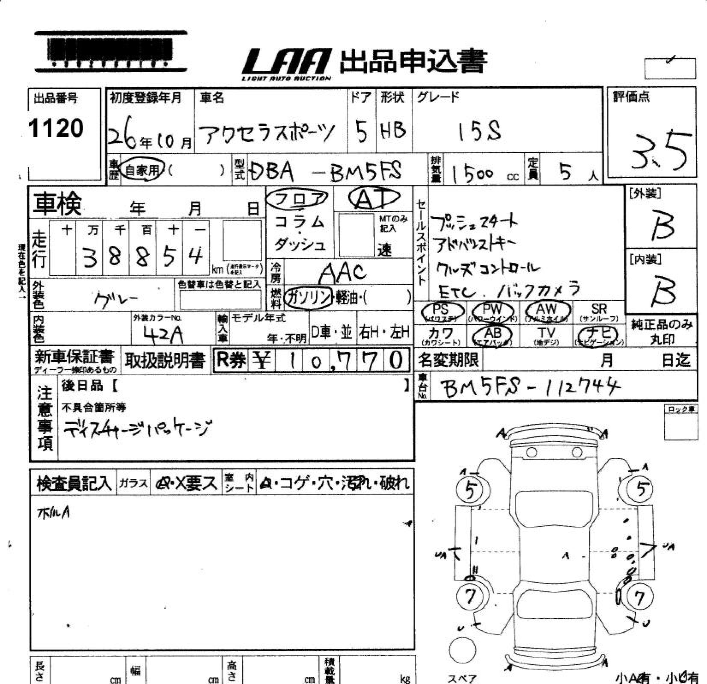 MAZDA AXELA SPORT 15S - лот 1120