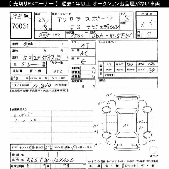 MAZDA AXELA SPORT 15S NAVI EDITION - лот 70031