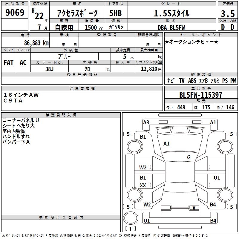 MAZDA AXELA SPORT 1.5S STYLE - лот 9069