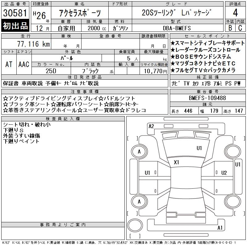 MAZDA AXELA SPORT 20S TOURING L PACKAGE - лот 30581