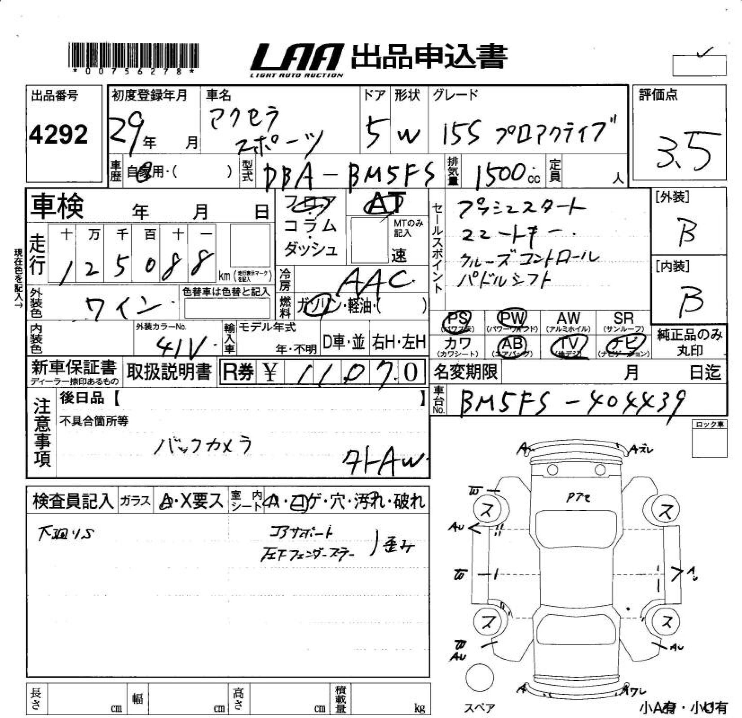 MAZDA AXELA SPORT 15S PRO ACTIVE - лот 4292