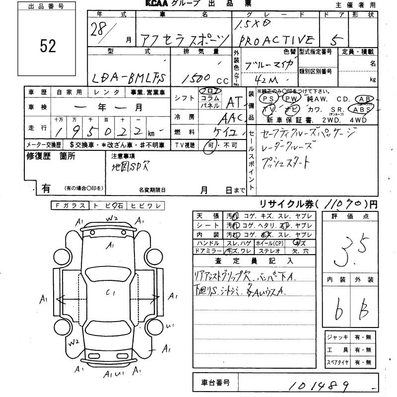 MAZDA AXELA SPORT 15XD PRO ACTIVE - лот 52