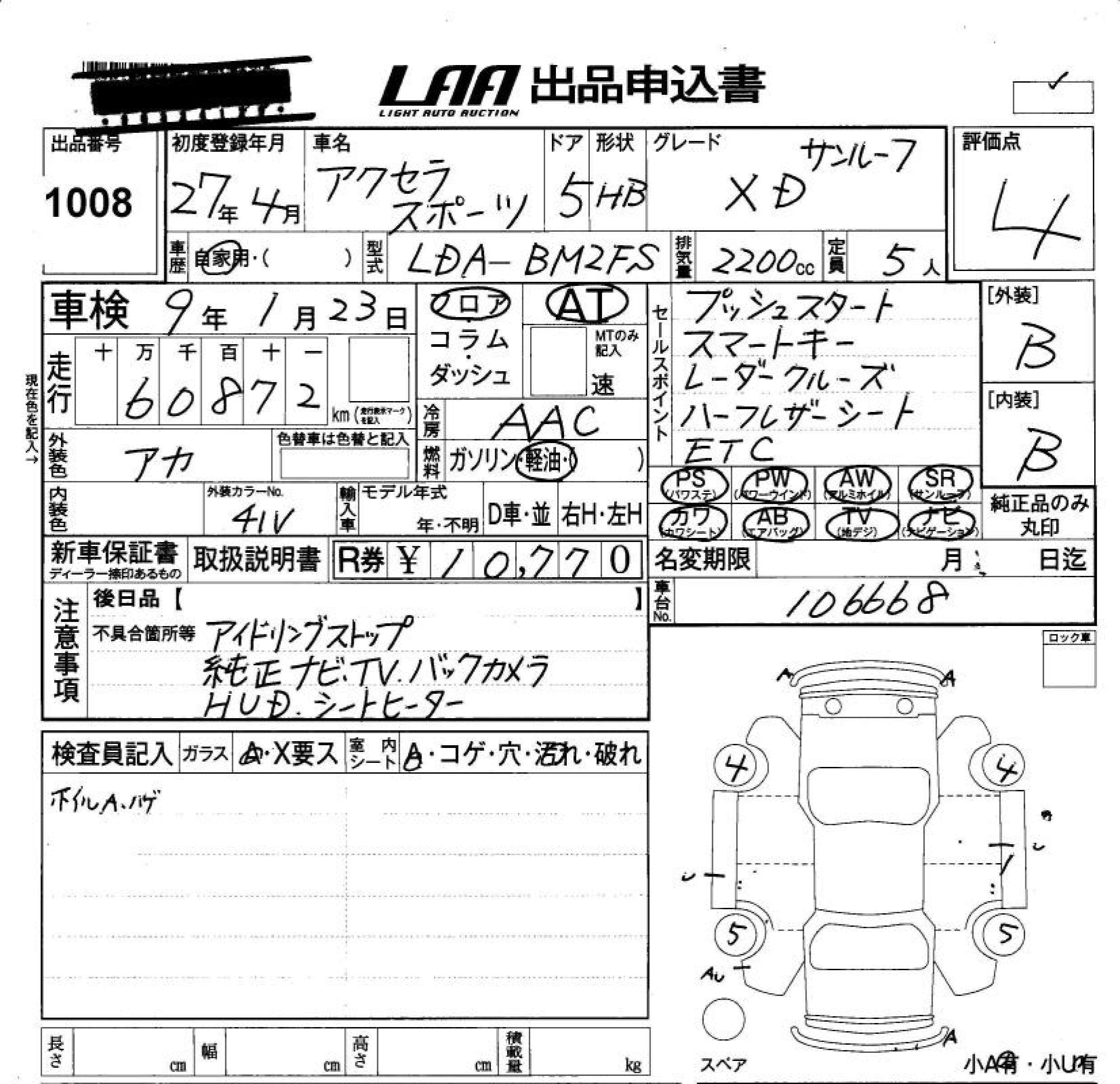 MAZDA AXELA SPORT XD SUNROOF - лот 1008