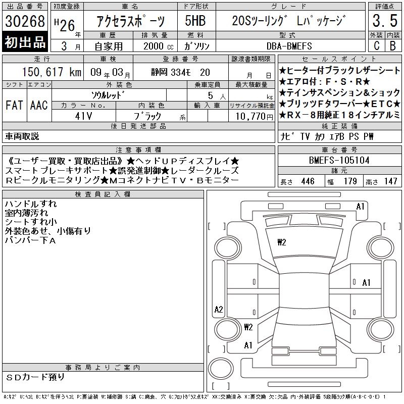 MAZDA AXELA SPORT 20S TOURING L PACKAGE - лот 30268