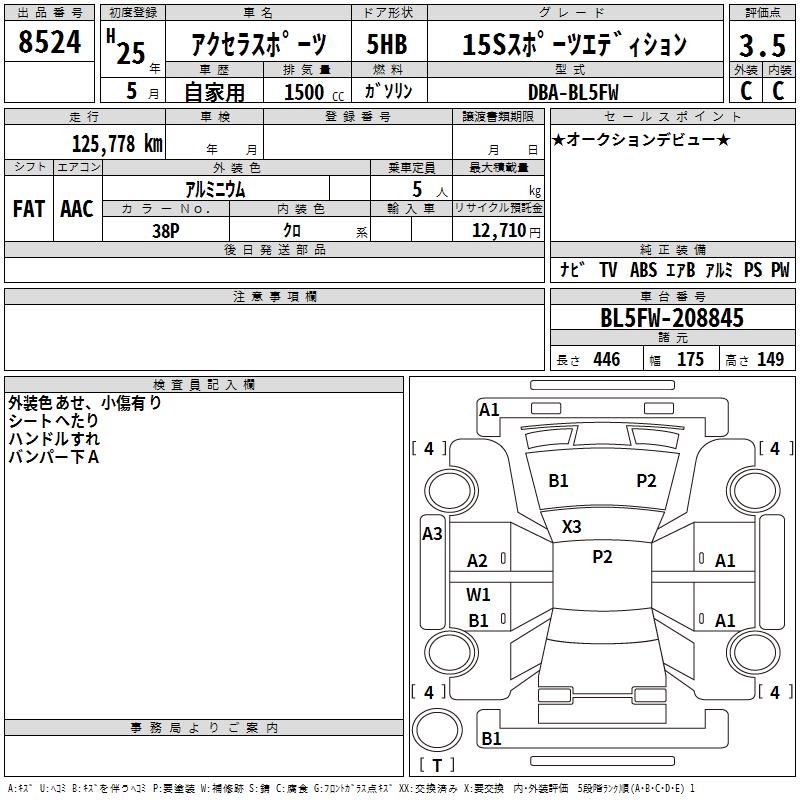 MAZDA AXELA SPORT 15S SPORT EDITION - лот 8524