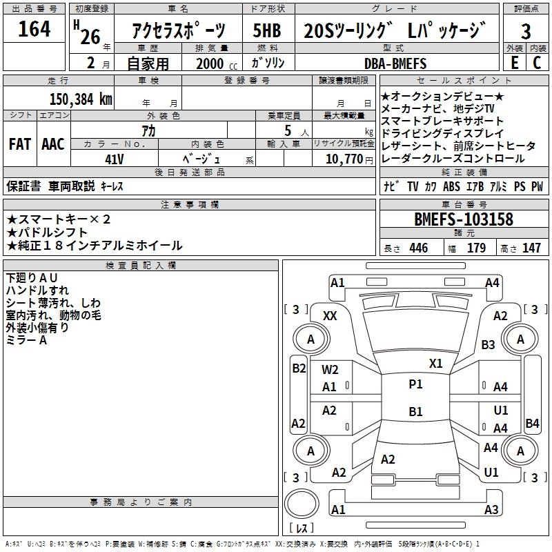 MAZDA AXELA SPORT 20S TOURING L PACKAGE - лот 164