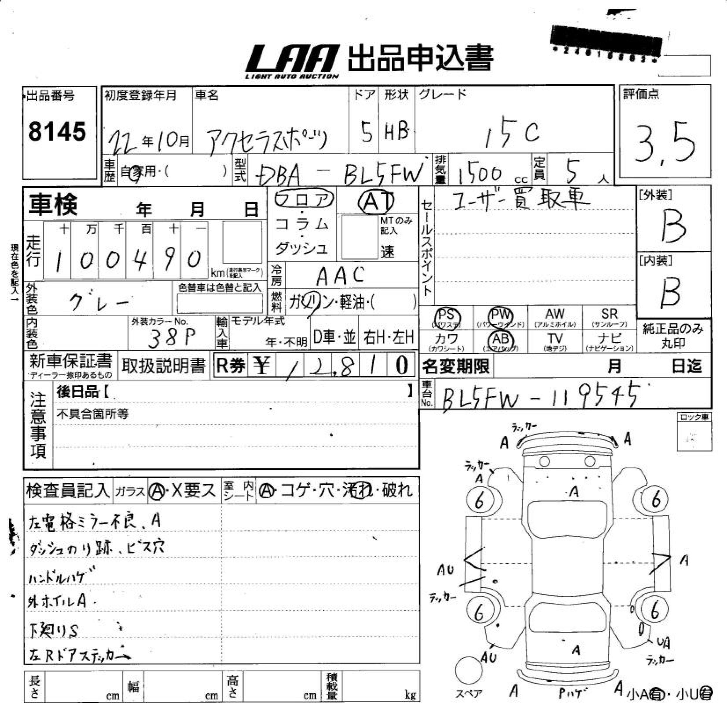 MAZDA AXELA SPORT - лот 8145