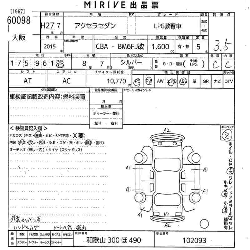 MAZDA AXELA LPG TRAINING CAR - лот 60098