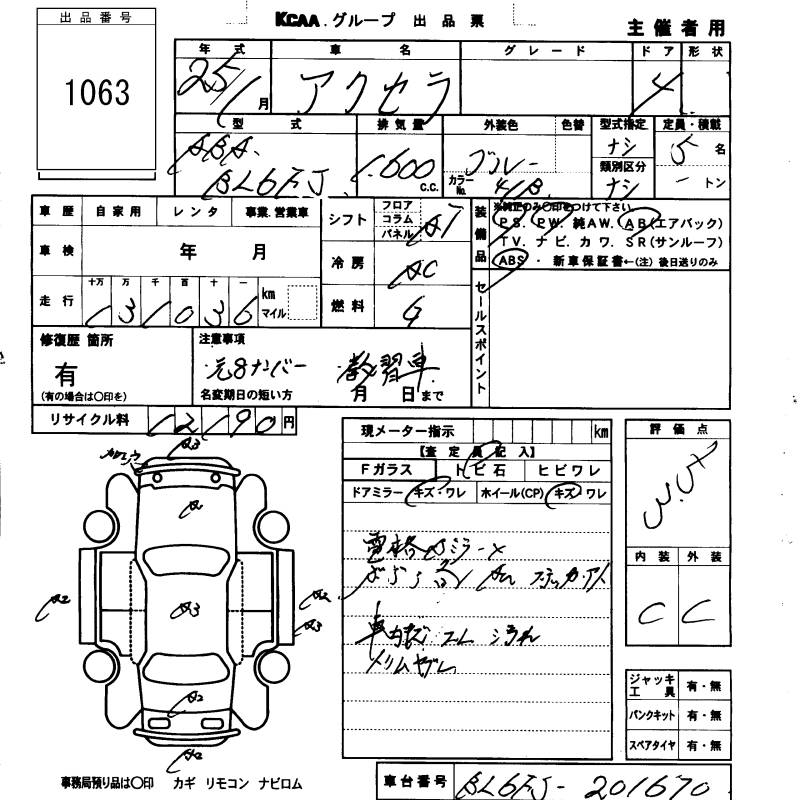 MAZDA AXELA - лот 1063