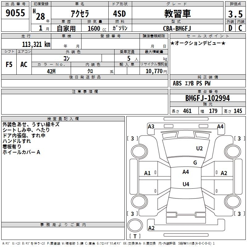 MAZDA AXELA TRAINING CAR - лот 9055