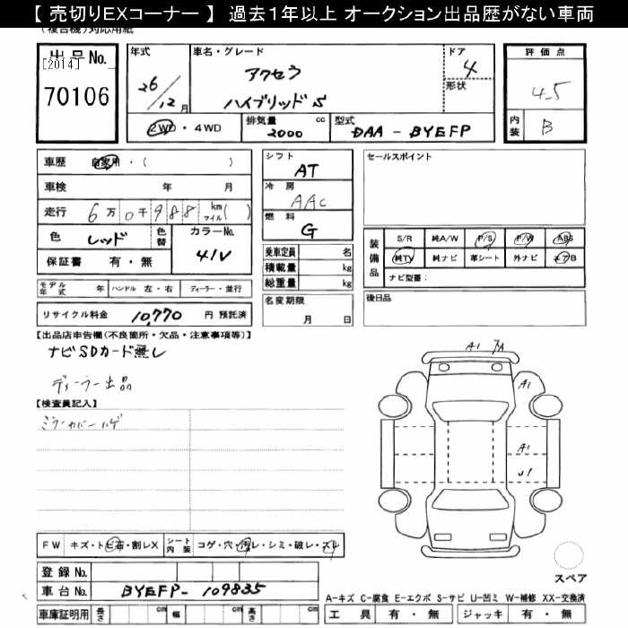 MAZDA AXELA HYBRID S - лот 70106
