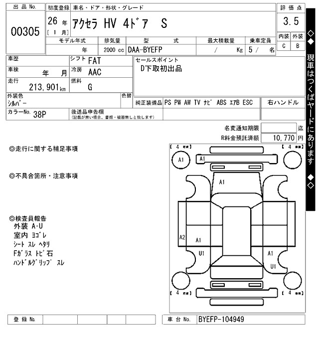 MAZDA AXELA S - лот 305