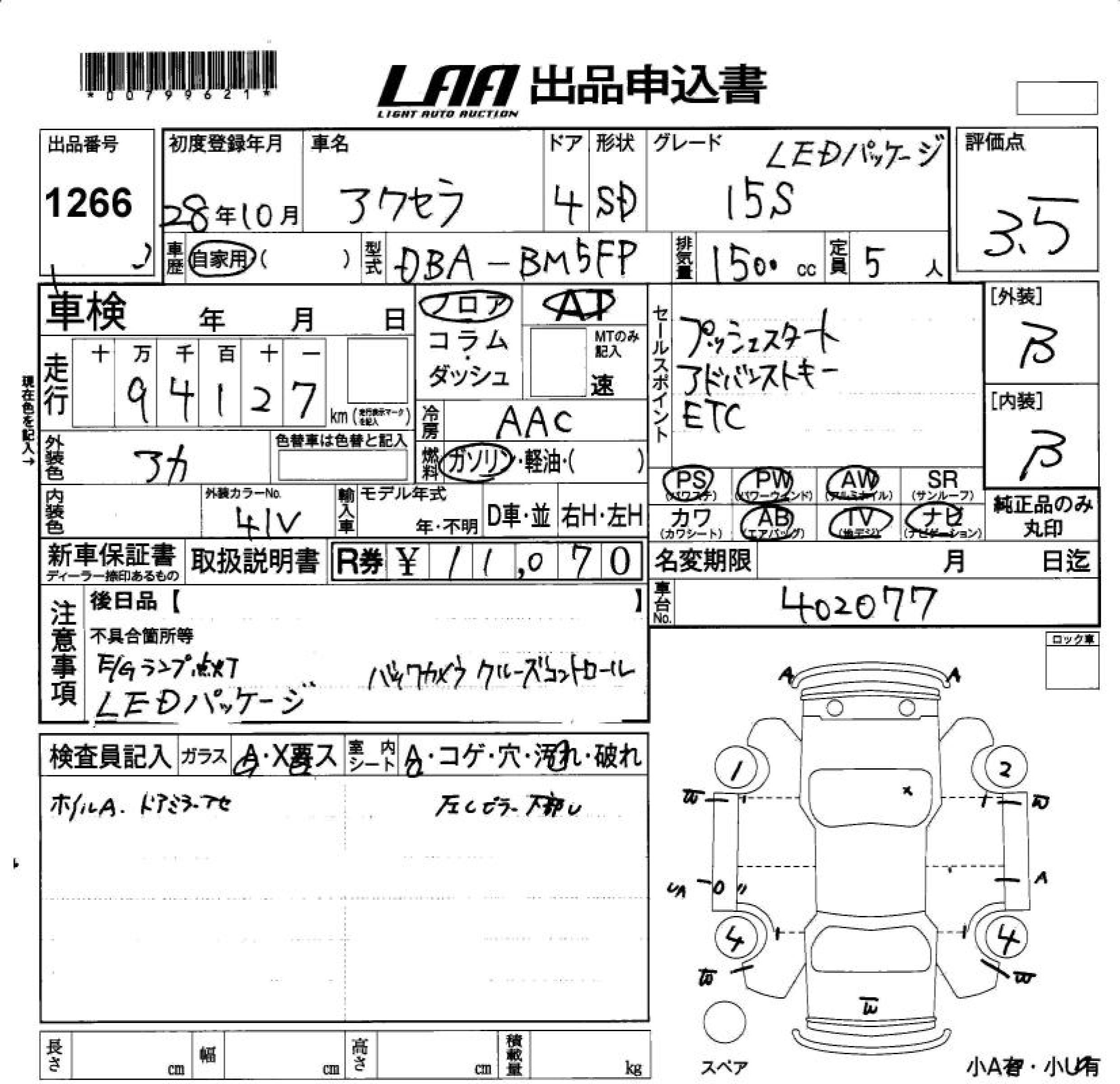 MAZDA AXELA 15S LED PACKAGE - лот 1266