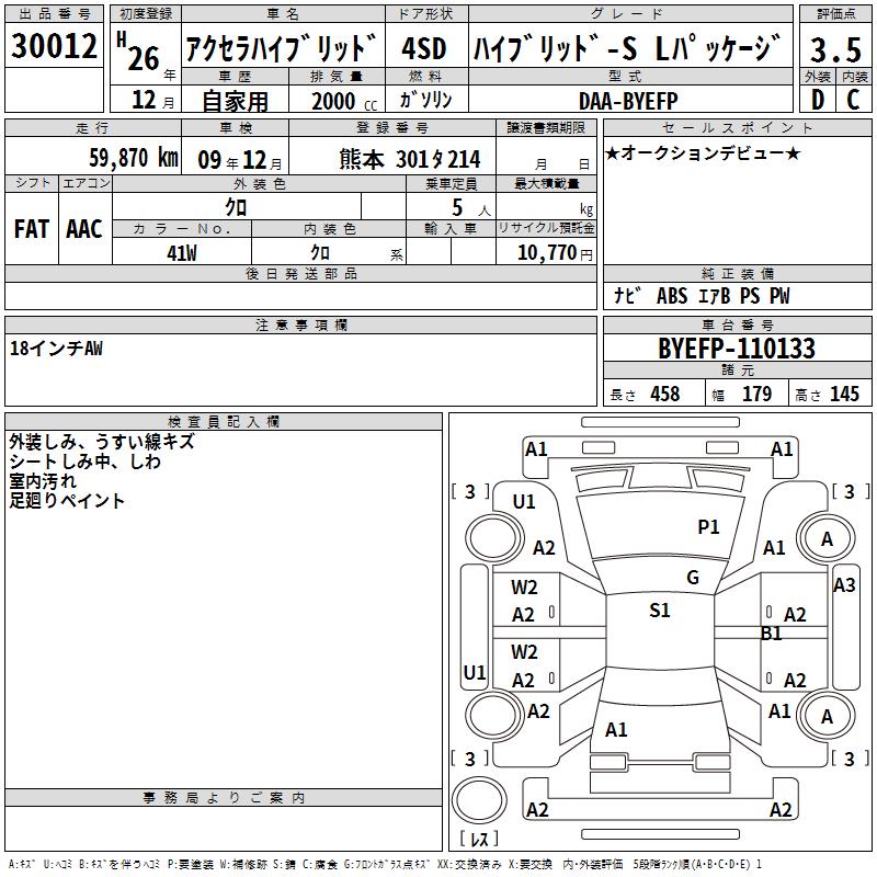 MAZDA AXELA HYBRID - лот 30012