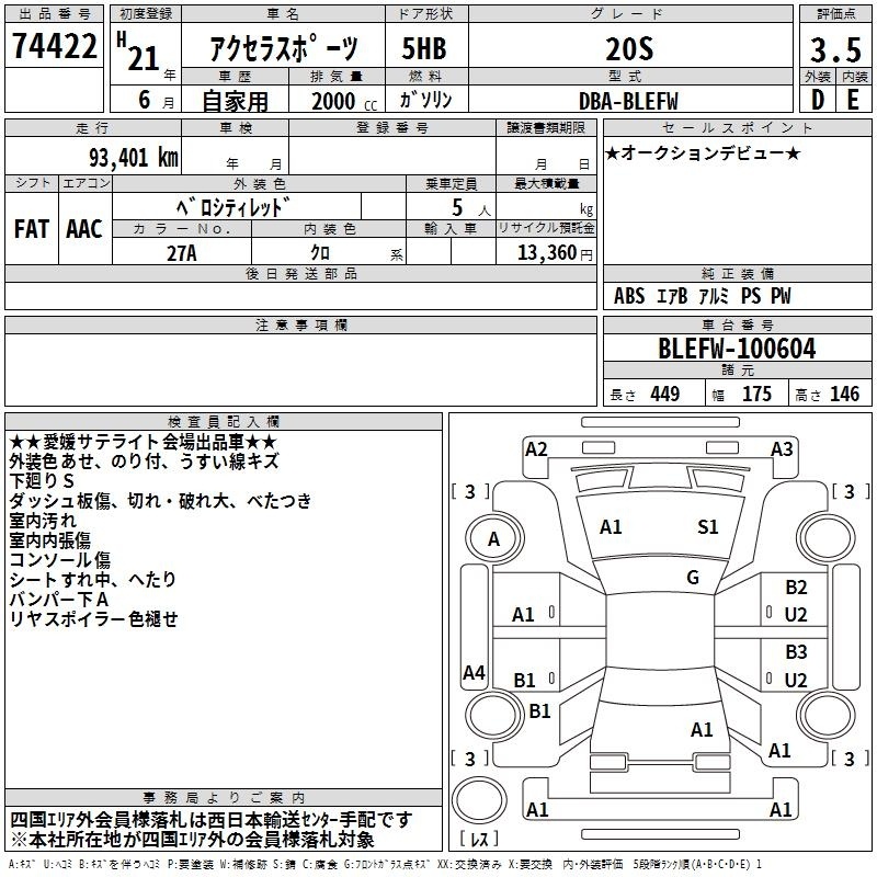 MAZDA AXELA SPORT - лот 74422