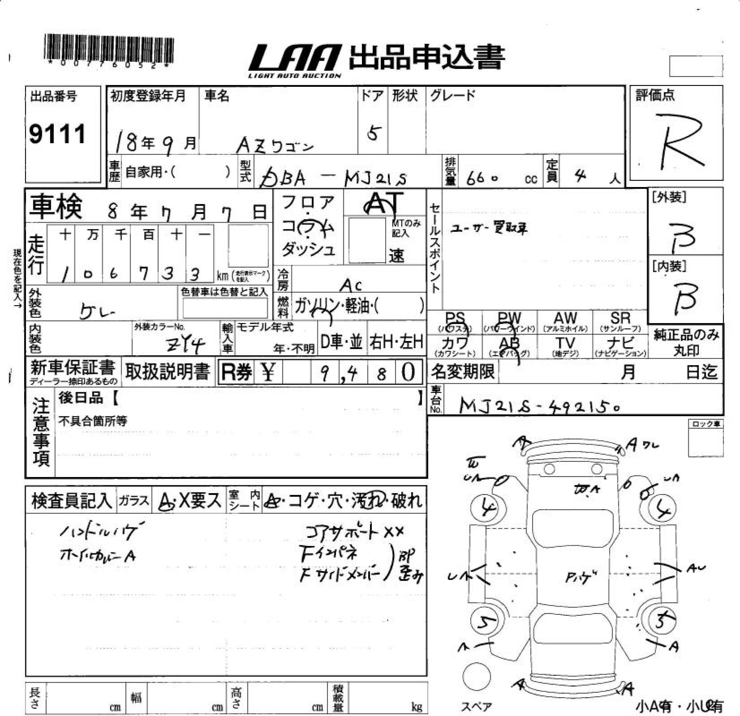 MAZDA AZ WAGON - лот 9111