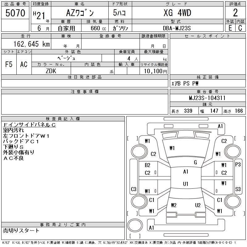 MAZDA AZ WAGON XG 4WD - лот 5070